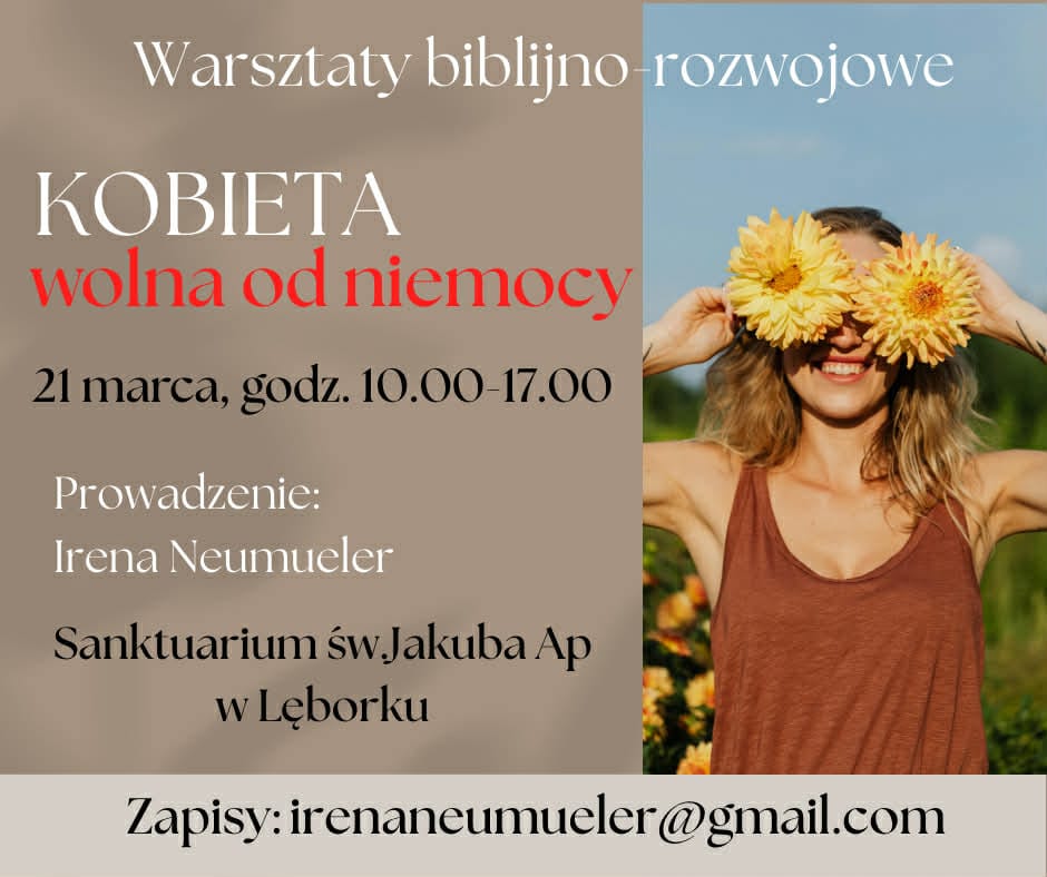 Zapraszamy na warsztaty biblijno-rozwojowe "Kobieta wolna od niemocy", które poprowadzi p. Irena Neumueler.